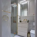 Das Apartment verfügt über eine getrennte Toilette und eine Dusche, die Ihren Komfort erhöhen. Zudem finden Sie im Badezimmer einen Haartrockner, einen Wäschetrockner und Handtücher.